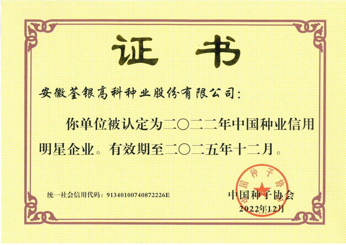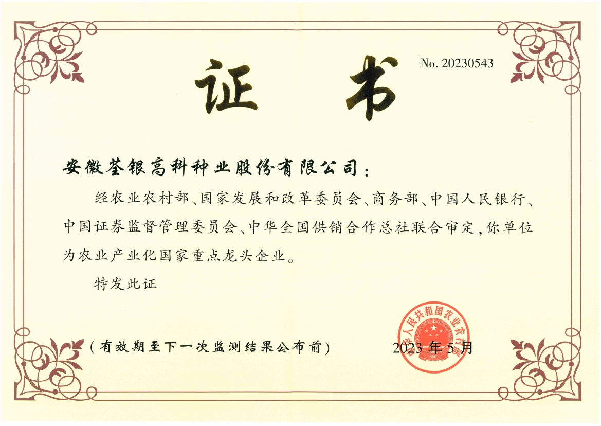 安徽荃銀高科種業(yè)股份有限公司是一家“以種業(yè)為核心、農(nóng)業(yè)服務(wù)為延伸、探索和創(chuàng)新農(nóng)業(yè)多元化發(fā)展”的現(xiàn)代高科技種業(yè)上市公司,證券代碼:300087。公司注冊資金9.47億元,系“中國種業(yè)領(lǐng)軍企業(yè)、農(nóng)業(yè)產(chǎn)業(yè)化國家重點龍頭企業(yè)、國家高新技術(shù)企業(yè)、農(nóng)業(yè)部首批農(nóng)作物種子育繁推一體化企業(yè)、中國種業(yè)信用明星企業(yè)"。在國內(nèi)控股子公司20多家,在國外設(shè)立分支機(jī)構(gòu)4家,良種銷售至全國20多個?。ㄊ?、區(qū)),出口覆蓋20多個國家與地區(qū),種業(yè)綜合實力、雜交水稻研發(fā)、推廣及海外業(yè)務(wù)規(guī)模均居全國種子企業(yè)前2位。
